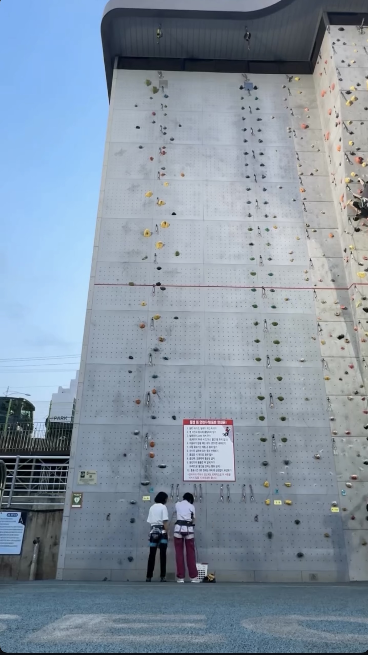- 로프/장비: 자동 확보 장치(톱 로프), 하네스, 전용 로프